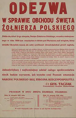 - ↑ Wojciech Duch: Jak obchodzono Święto Żołnierza w II RP. Rozkaz nr 126. historia.org, 2014-08-15. [dostęp 2025-02-23].