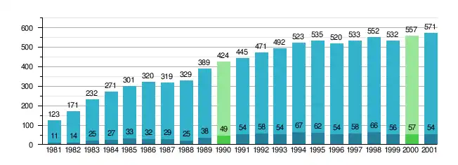 Dane na podstawie oficjalnych raportów o działalności[15]: