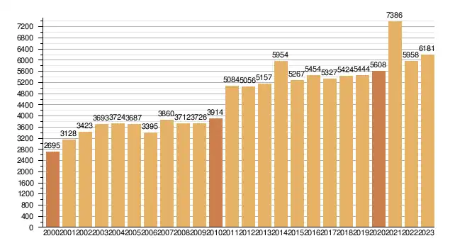 Dane na podstawie oficjalnych raportów o działalności[56]: