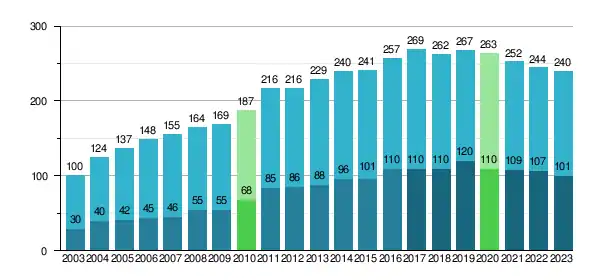 Dane na podstawie oficjalnych raportów o działalności[16]: