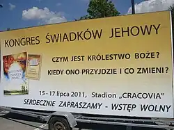 - ↑ Kongres Świadków Jehowy w Krakowie. Spodziewana liczba uczestników to 10 000 [online], cowkrakowie.pl, 8 sierpnia 2019 [dostęp 2019-08-08].