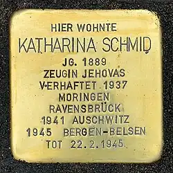- ↑ Aktualności. Nowa lekcja internetowa: „Więźniowie z fioletowym trójkątem. Los Świadków Jehowy i Badaczy Pisma Świętego w obozie Auschwitz” [online], auschwitz.org, 4 lipca 2024.
