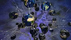 - równoległe Ziemie i światy "zjazdu" w serialu Sliders.