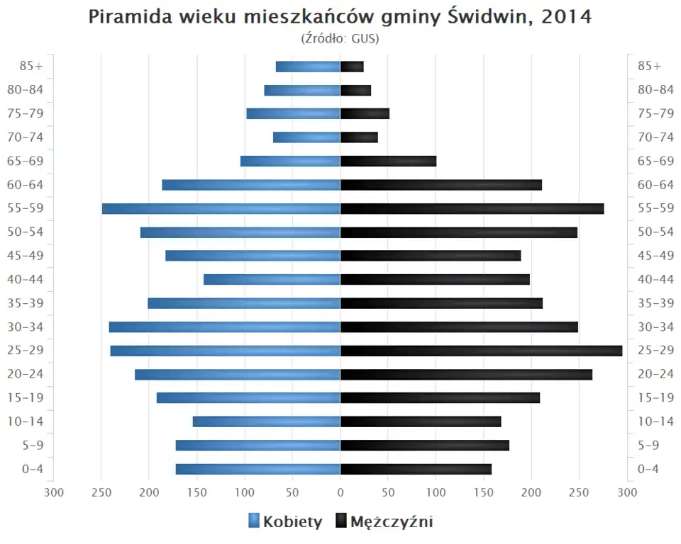 - Piramida wieku mieszkańców gminy Świdwin w 2014 roku[3].