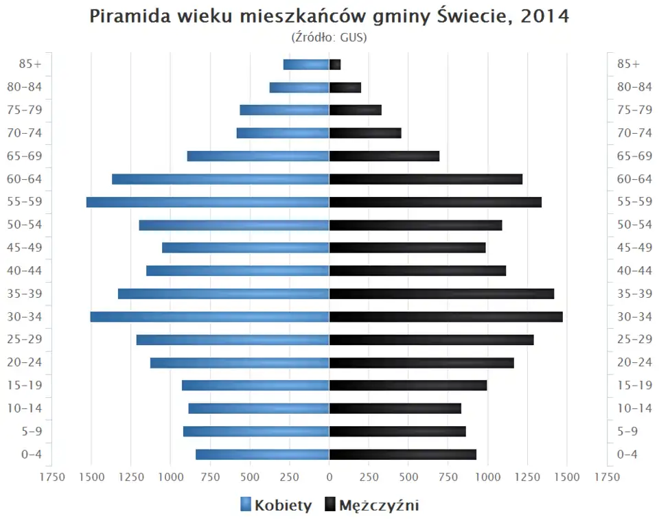 • Piramida wieku mieszkańców gminy Świecie w 2014 roku[1].
