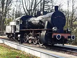 Pomnik-lokomotywa Tp4 przy przystanku Świeradów-Zdrój