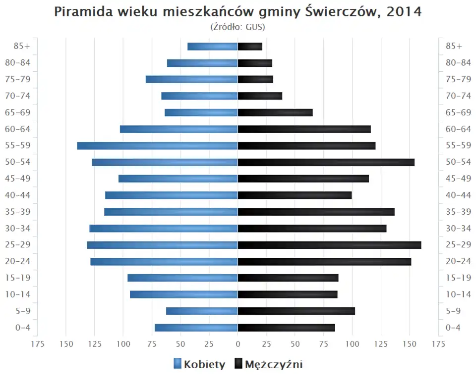 - Piramida wieku mieszkańców gminy Świerczów w 2014 roku[1].