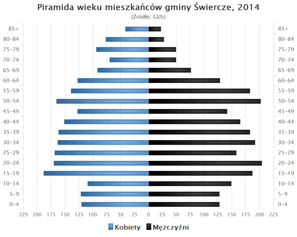 - Piramida wieku mieszkańców gminy Świercze w 2014 roku[6].