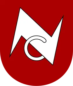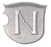 Na tarczy w polu błękitnym złota majuskuła N z wygięciem w belce poprzecznej.