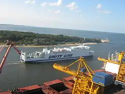 U jej ujścia do Zatoki Pomorskiej znajduje się port morski Świnoujście z terminalem promowym, także ulokowany w nim port wojenny.
