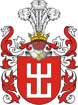 - ↑ Tadeusz Gajl: Herbarz polski od średniowiecza do XX wieku : ponad 4500 herbów szlacheckich 37 tysięcy nazwisk 55 tysięcy rodów. L&L, 2007. ISBN 978-83-60597-10-1.