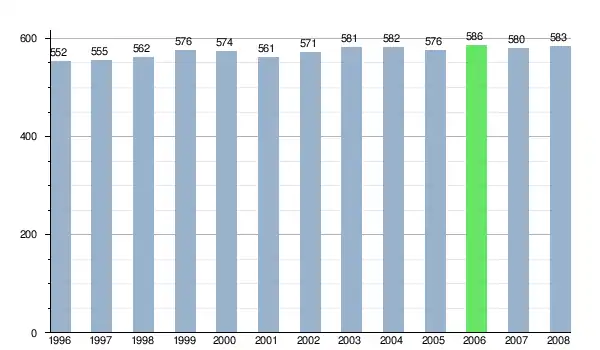 Według danych z dnia 31 grudnia 2012, wieś zamieszkiwało 541 osób, w tym 272 kobiety i 269 mężczyzn[6].