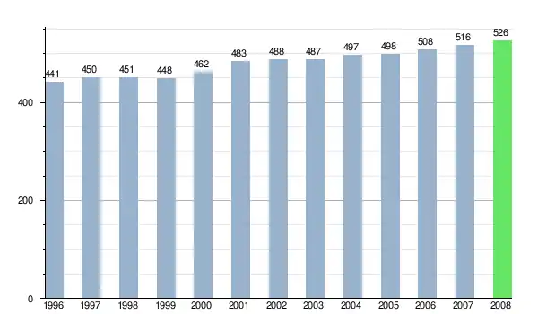 Według danych z dnia 31 grudnia 2012, wieś zamieszkiwało 588 osób, w tym 299 kobiet i 289 mężczyzn[7].