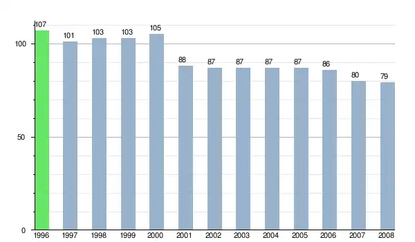 Zmiany liczby ludności w miejscowości Španie Pole od 1996 roku.