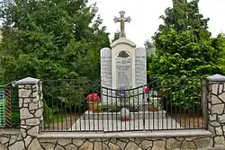 ![]() Widok wsi z pomnikiem | |