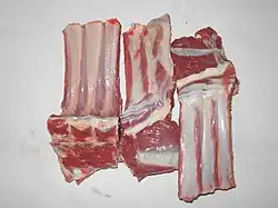 Żeberka – element handlowy pozyskany z półtuszy wieprzowej z kością z części brzusznej odcięta od schabu po linii prostopadłej w odległości 3 cm od przyczepu żeber, a następnie po linii biegnącej poniżej dolnej krawędzi mostka i żeber chrząstkowych z przodu po przedniej krawędzi kości żeber, od tyłu po tylnej krawędzi kości ostatniego żebra.