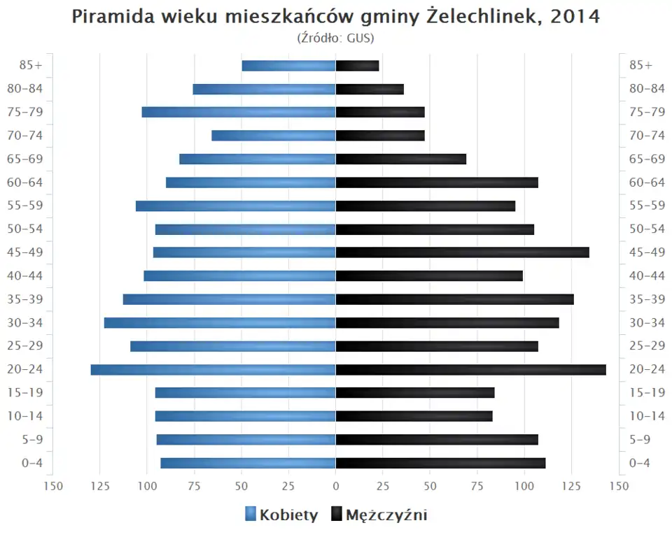 - Piramida wieku mieszkańców gminy Żelechlinek w 2014 roku[1].