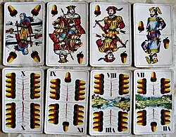 | Typ niemiecki | Wino | Czerwień | Żołądź | Dzwonek |