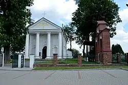- Wincenty Makomaski wybudował tu w latach 1827–1828 kościół Podwyższenia Krzyża Świętego, pełniący pierwotnie funkcję rodowej kaplicy grobowej. Po 1870 r. został zamieniony na cerkiew prawosławną, od 1919 r. znowu jest świątynią rzymskokatolicką. Zbudowany w stylu klasycystycznym, wyróżnia się fasadą z portykiem wspartym na czterech kolumnach toskańskich.