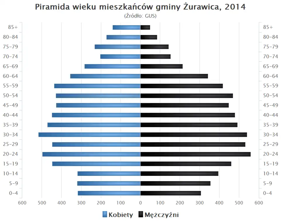 - Piramida wieku mieszkańców gminy Żurawica w 2014 roku[7].