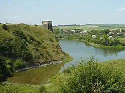 - Zamek w Żwańcu – ruiny zamku położone są na cyplu, który opada stromym skalnym zboczem ku rzeczce Żwańczyk i znajdują się na północ od pobliskiego miasteczka. Zamek główny był założony na planie nieregularnego pięciokąta, z pięciobocznymi basztami na narożach i dwupiętrowym budynkiem frontowym – bramnym pośrodku południowo-zachodniej kurtyny. Odcinki murów północno-zachodni i północno-wschodni przebiegały przy krawędzi urwiska, pozostałe były dodatkowo bronione głębokim przekopem suchej fosy oddzielając zamek od miasteczka. W 1431 r. Władysław II Jagiełło nadał Żwaniec rycerzowi Świeczce z Leczyna. W 1469 r. miasteczko było własnością królestwa, dzierżawioną przez Michała Buczackiego z Jazłowca. Za jego czasów powstała pierwsza warownia, której kształt nie jest znany. W końcu XVI wieku Żwaniec przeszedł na własność rodziny Kalinowskich. W pierwszej ćwierci XVII wieku Walenty Kalinowski, generał ziem podolskich wzniósł nowy zamek, który ze względu na bliskość granicy biegnącej Dniestrem i sąsiedztwo wielkiej twierdzy tureckiej w Chocimiu, stał się ważnym ogniwem systemu obronnego ziem Korony, znajdującym się w najdalej wysuniętym na południe łańcuchu zamków. Kolejnym właścicielem zamku był Jan Lanckoroński (zm. 1615 r.)[1], który otrzymał go jako wiano, poślubiając około 1603 r. Barbarę Kalinowską (zm. 1626), siostrę Walentego[1]. Kolejnym właścicielem był jego syn Stanisław Lanckoroński[1] w latach 1620-1630[2]. W 1653 r. był schronieniem wojsk polskich, obleganych przez Kozaków Chmielnickiego. W 1672 r. oddany został bez walki Turkom, przez załogę która przeniosła się do pobliskiego Kamieńca Podolskiego i do 1699 r. pozostawał w rękach tureckich. Po odzyskaniu przez Lanckorońskich, zamek został odbudowany, ale ponownie zniszczył go najazd turecko-tatarski w 1768 r. W tym samym czasie na krótko zamek zajęli konfederaci barscy, wyparci przez wojska rosyjskie. Po 1793 r. Żwaniec znalazł się w zaborze rosyjskim i utracił militarne znaczenie. Odtąd zaczął się powolny proces dewastacji zamku, prowadzący do jego całkowitej ruiny.Do obecnych czasów zachowała się baszta północna trzykondygnacyjna ze strzelnicami, resztki baszty wschodniej i relikty budynku bramnego.