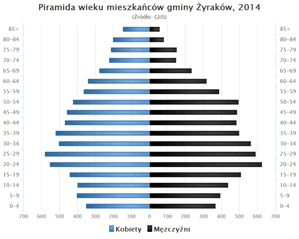 • Piramida wieku mieszkańców gminy Żyraków w 2014 roku[8].