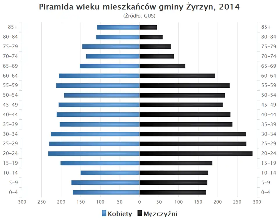 - Piramida wieku mieszkańców gminy Żyrzyn w 2014 roku[1].