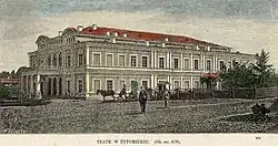 Około połowy XIX wieku w Żytomierzu zamieszkał Józef Ignacy Kraszewski. Pełnił tu m.in. funkcje kuratora szkół polskich, dyrektora Teatru Żytomierskiego i Klubu Szlacheckiego[11]. Przy jego wsparciu wzniesiono w mieście nowy gmach teatru.