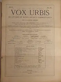 - Vox Urbis (wydawca: Aristide Leonori, w Rzymie, 1898-1913)
