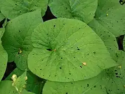 - Zielone, duże ogonkowe, o sercowatym kształcie, zaostrzone, całobrzegie. Mają wyraźną siatkowatą użyłkowanie na dolnej stronie i całe są szorstko owłosione. Liście łodygowe zaostrzone o wydłużonym sercowatym kształcie, całobrzegie. Liście rosnące na łodydze mają krótsze ogonki i są coraz węższe i mniejsze im wyżej są położone, najwyższe są prawie bezogonkowe.