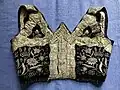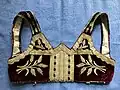 Żywotek starszego typu był obszywany srebrnym lub złotym galonem, sutaszem lub tasiemką. Do haftowania używano srebrnych lub złotych nici, które często przyozdabiano drobnymi metalowymi i szklanymi perełkami, cieniutkimi posrebrzanymi i pozłacanymi sprężynkami, rureczkami lub malutkimi cekinami. Najstarszy typ haftu zapożyczony z bogatych wzorów mieszczańskich to okazały pełny, wypukły haft o motywach roślinnych (stylizowane kwiaty, liście, kłosy)[3].