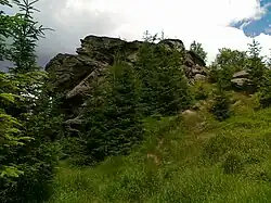 - ↑ Pozycja na mapie. Žárový vrch – skalisko szczytowe 1:750 [online], pl.mapy.cz [dostęp 2019-11-23].