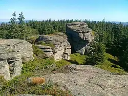 ![]() Widok ze skaliska szczytowego góry Točník na góry Keprník i Žalostná (2016 rok) | |