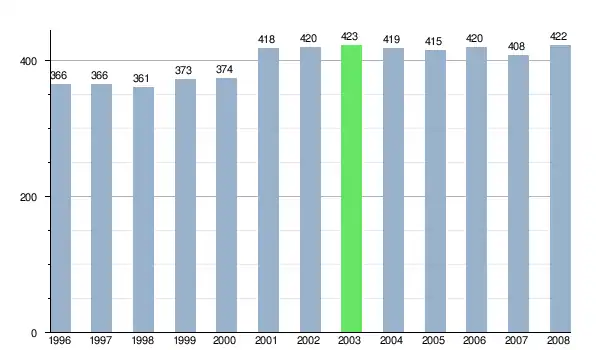 Według danych z dnia 31 grudnia 2012, wieś zamieszkiwało 414 osób, w tym 206 kobiet i 208 mężczyzn[6].