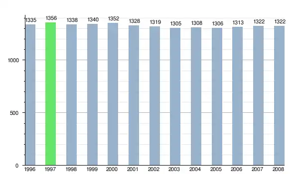 Zmiany liczby ludności w miejscowości Ždaňa od 1996 roku.