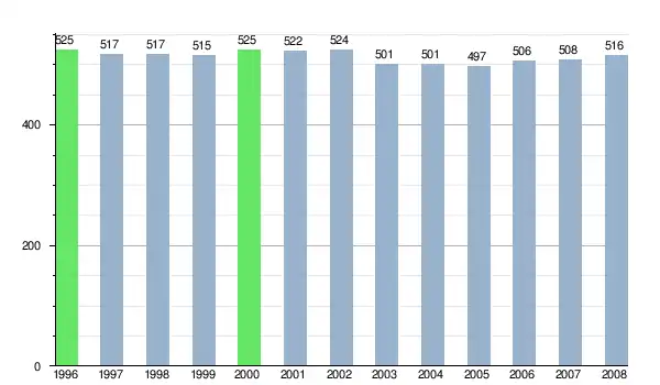 Według danych z dnia 31 grudnia 2012 roku, wieś zamieszkiwały 542 osoby, w tym 277 kobiet i 265 mężczyzn[6].