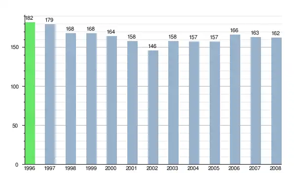 Zmiany liczby ludności w miejscowości Žemliare od 1996 roku.