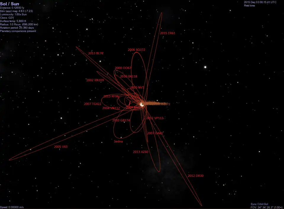 - ↑ JPL Small-Body Database Search Engine: a > 150 (AU) and q > 30 (AU) and data-arc span > 365 (d). JPL Solar System Dynamics. [dostęp 2014-04-09].
