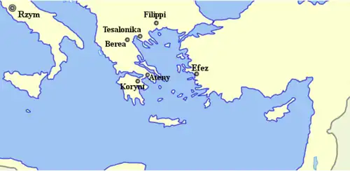 - ↑ H. Koester. Za Raymond F. Collins: 1 List do Tesaloniczan. W: Katolicki Komentarz Biblijny. s. 1421.