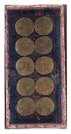52-kartowa talia kart do gry zawiera 4 dziesiątki, po jednej w każdym kolorze (trefl, karo, kier i pik). Karta oznaczona jest liczbą 10 w narożnikach oraz zawiera 10 "oczek" w kształcie karcianych symboli.