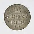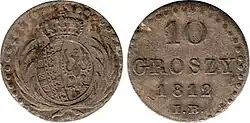 10 groszy (1812–1813) – moneta dziesięciogroszowa Księstwa Warszawskiego, bita na podstawie dekretu Fryderyka Augusta, króla saskiego, księcia warszawskiego, z dnia 25 czerwca 1810 r.[1]