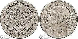 | 10 złotych 1933 | Polonia | Warszawa | herb Kościesza | 2 905 000 | ![]() |