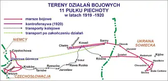 | wojna polsko-bolszewicka bitwa pod Starynkami (2 IV 1920) bitwa pod Ciepielówką (29 V 1920) bitwa pod Dorohuskiem bitwa pod Chełmem (11-18 VIII 1920) bitwa pod Dubienką (14-31 VIII1920) kampania wrześniowa bitwa pod Tomaszowem (17–20 IX 1939) | |