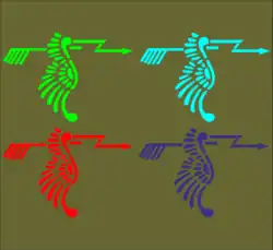 - uskrzydlony grot w różnych kolorach (zależnie od decyzji pilotów w 11 plot).