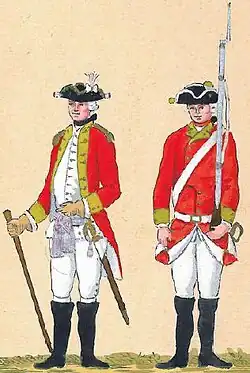 Stanowisko szefa regimentu, związane z wielkimi poborami, było najczęściej uważane za synekurę. Szefowie posiadali prawo fortragowania (przedstawiania do awansu) oficerów. Regimentem dowodził zazwyczaj pułkownik[12]. Do 1790 roku w sztabie służyło dziesięciu oficerów. Byli to: szef regimentu, pułkownik, podpułkownik, major, regimentskwatermistrz, adiutant, audytor i regimentsfelczer. Szefa i pułkownika w dowodzeniu kompaniami zastępowali kapitanowie sztabowi. W kompaniach do 1790 roku było dwóch kapitanów, sześciu poruczników i sześciu chorążych. Zatem w regimencie znajdowało się 24 oficerów wyłączając kapelana[13].