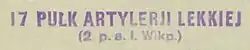 23 stycznia 1920 roku 2 pułk artylerii polowej Wielkopolskiej został przemianowany na 17 pułk artylerii polowej[5]. We wrześniu 1920 pułk dysponował 76,2 mm armatami rosyjskimi[6].