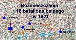 17 batalion celny w Lesznie ⇔ 14 batalion celny w Laskach – VI 1921[13]