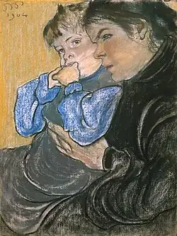 - Portret żony artysty z synkiem Stasiem – pastel na papierze, 61×46,5 cm[5]