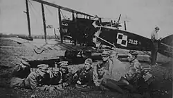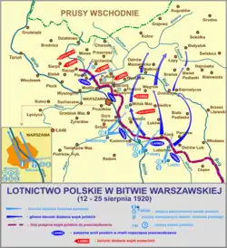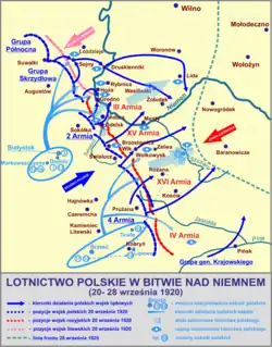 - ↑ Plan przydziału poszczególnych eskadr dla związków armijnych przed bitwą warszawską przedstawiał się następująco: 5 Armia – 1, 12 i 13 eskadra, 1 Armia – 8 i 9 eskadra, 2 Armia – 17 eskadra, 4 Armia – 3, 10 i 15 eskadra, 3 Armia – 2, 14 i 21 eskadra, 6 Armia – 5, 6 i 7 eskadra. Z planu tego nie zrealizowano przydziału 15 eskadry do 4 Armii oraz nie uwzględniono w nim przydziału eskadry toruńskiej do 2 Armii. Natomiast 16 i 19 eskadra pozostawały w odwodzie Naczelnego Dowództwa Wojska Polskiego]][17].