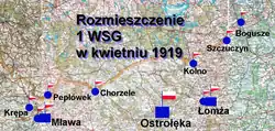 | Rozmieszczenie 1 pWSG w Ostrołęce 17 kwietnia 1919[24][d] (2/-): | ||||||||